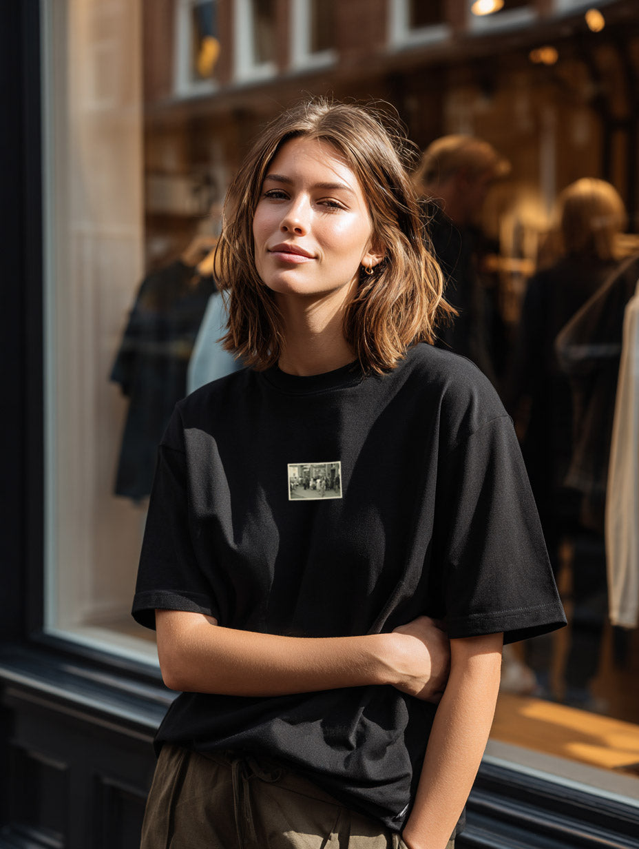 This is a vintage black-and-white portrait photograph of a woman with an intense, almost mischievous expression. She is wearing dark clothing and a headscarf or hat that partially covers her hair, with a small round pin or button attached to it. Her gaze is direct, with darkly defined eyebrows and shadows around her eyes, giving her a striking and somewhat mysterious appearance. The background is plain and slightly faded, and the photo has an aged look with visible wear around the edges, suggesting it may be an old printed photograph. The overall composition and style resemble early 20th-century portrait photography, possibly from the 1920s or 1930s.